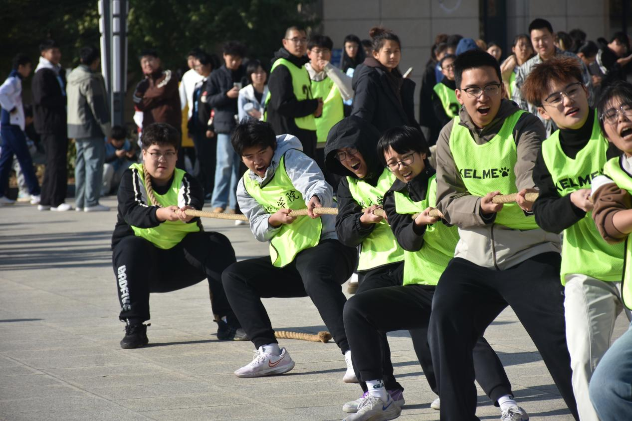 比赛于上午9:30正式拉开帷幕。裁判哨声如破空之笛点燃赛场,我院参赛队员迅速进入竞技状态:他们身体后倾、紧握长绳,通红的脸庞上满是坚毅。赛场边助威的呐喊声与绳子的摩擦声、队员的发力声交织,一次次将比赛气氛推向沸腾顶点。