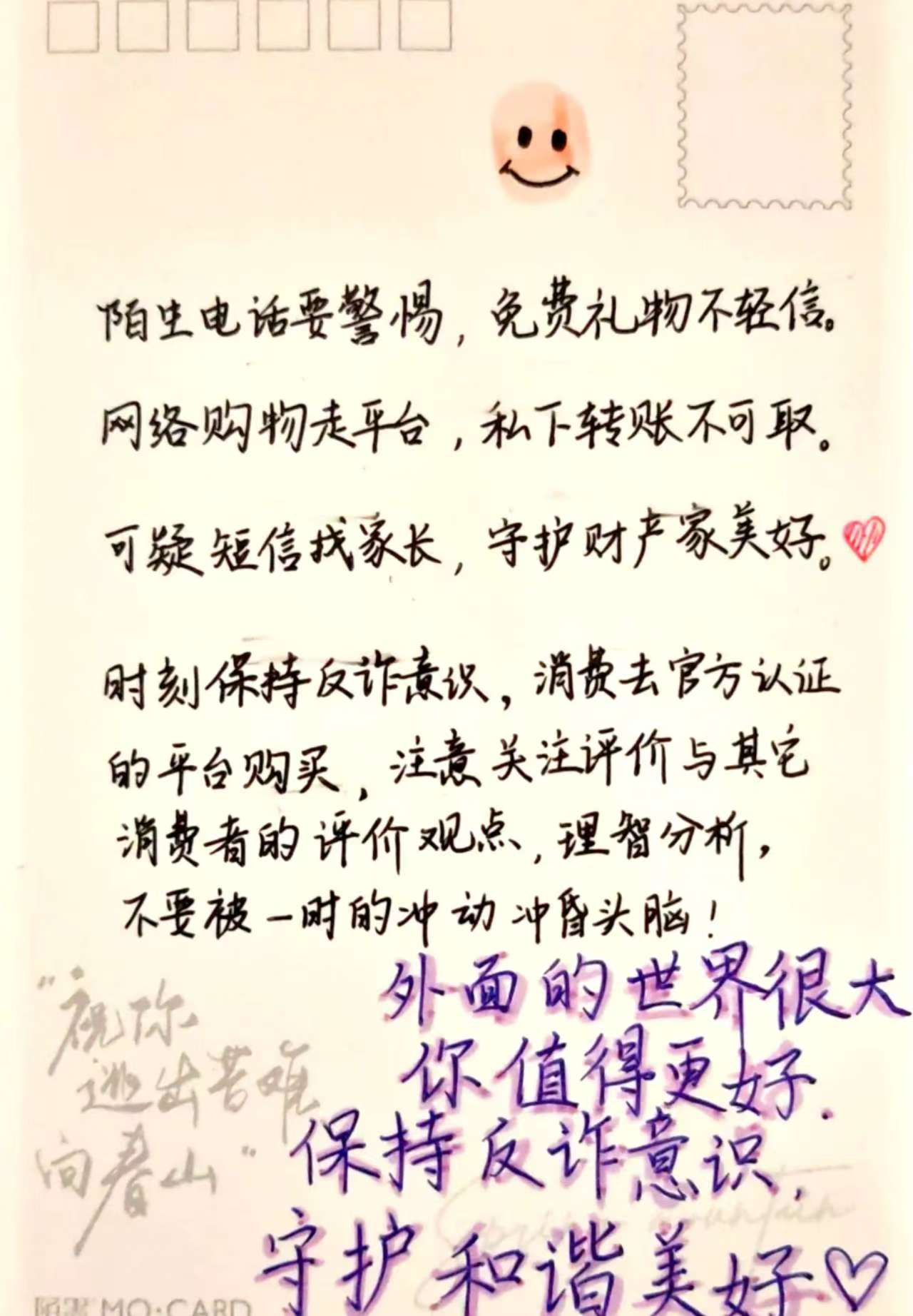 10月10日,我院在中心体育馆广场设立活动线下宣传摊位。志愿者们热情地向过往同学们讲解常见诈骗手法及防范要点,普及反诈安全知识,并邀请大家通过绘制反诈主题明信片参与公益行动。