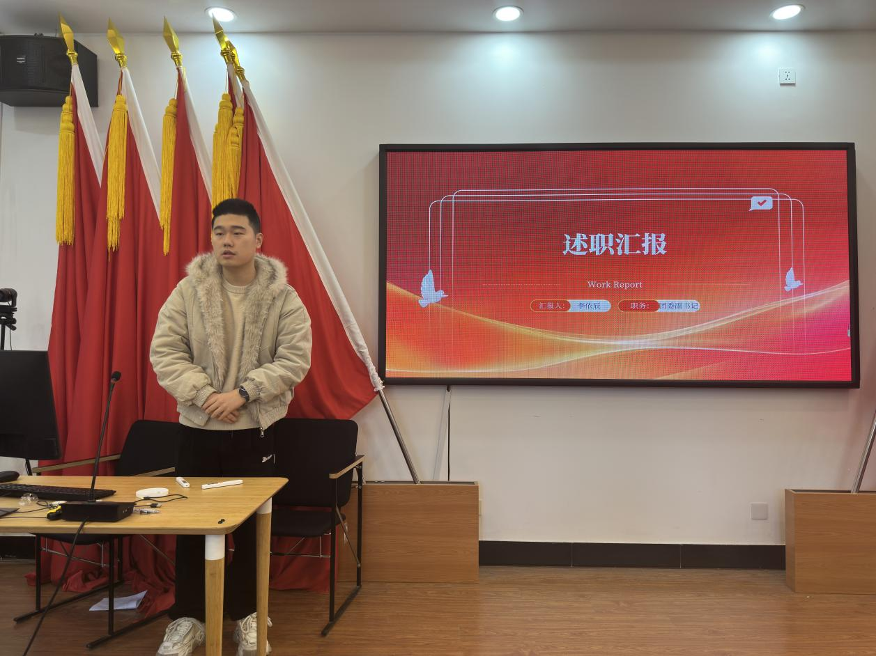 团学各部门工作合力,12月25日,我院团学2025-2026学年第一学期述职评议大会在王湘浩楼B340顺利召开。院团委负责人戴嘉宜老师及团学各部门负责人参会,各部门依次汇报履职情况,全面展现学期工作成果与团队建设成效。